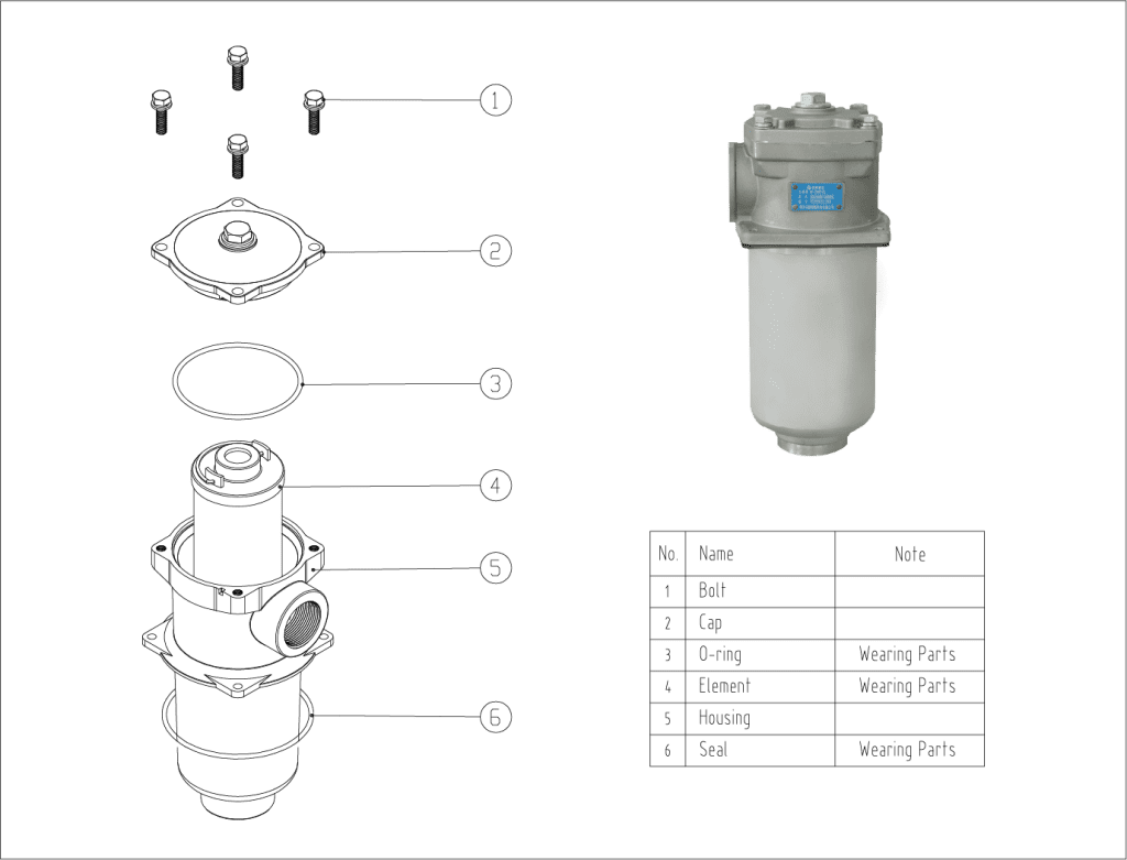By-pass valve will crack to protect the normal operation of element and the system when pressure drop reaches to the set value.