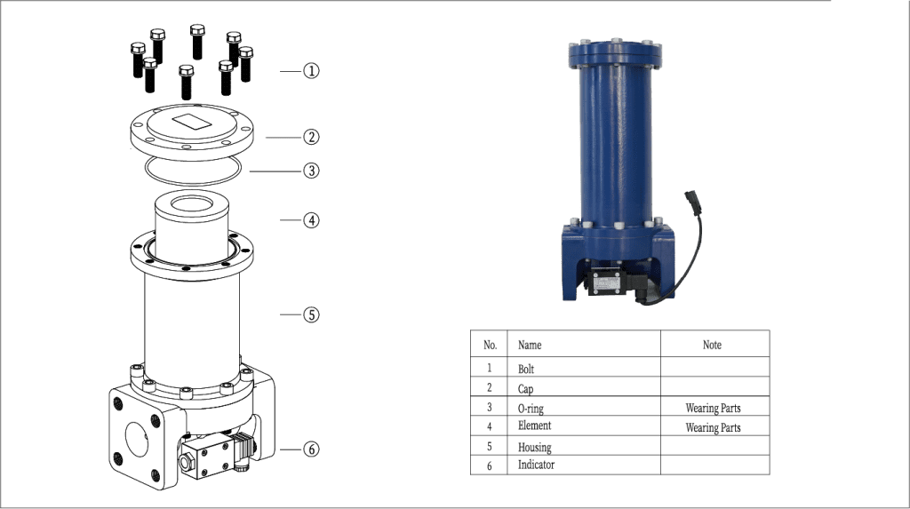 By-pass valve will crack to protect the normal operation of element and the system when pressure drop reaches to the set value.