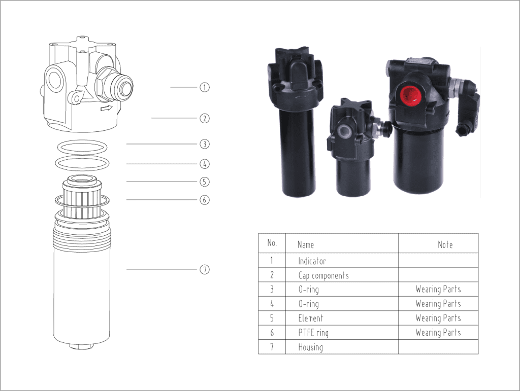 By-pass valve will crack to protect the normal operation of element and system when pressure drop reaches to the set value.
